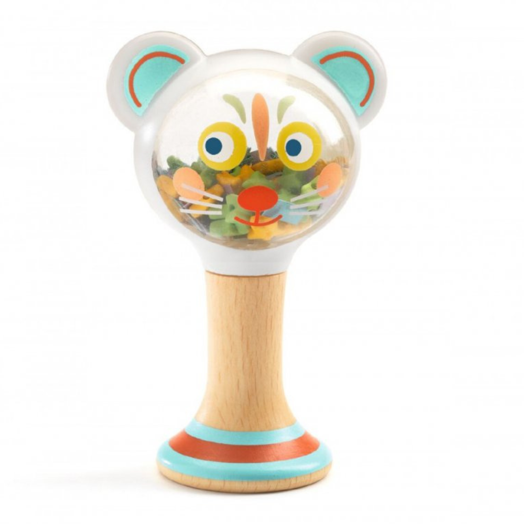 Při pohybu chrastítka se uvnitř ozývá jemný zvuk, který děti přirozeně láká k opakované interakci. Tato vlastnost skvěle napomáhá k rozvoji koordinace ruky a oka, když se miminko snaží lokalizovat zdroj zvuku. Jemné pastelové tóny působí uklidňujícím dojmem a podporují vizuální rozlišování, zatímco sametový povrch rukojeti nabízí bohatý hmatový zážitek.