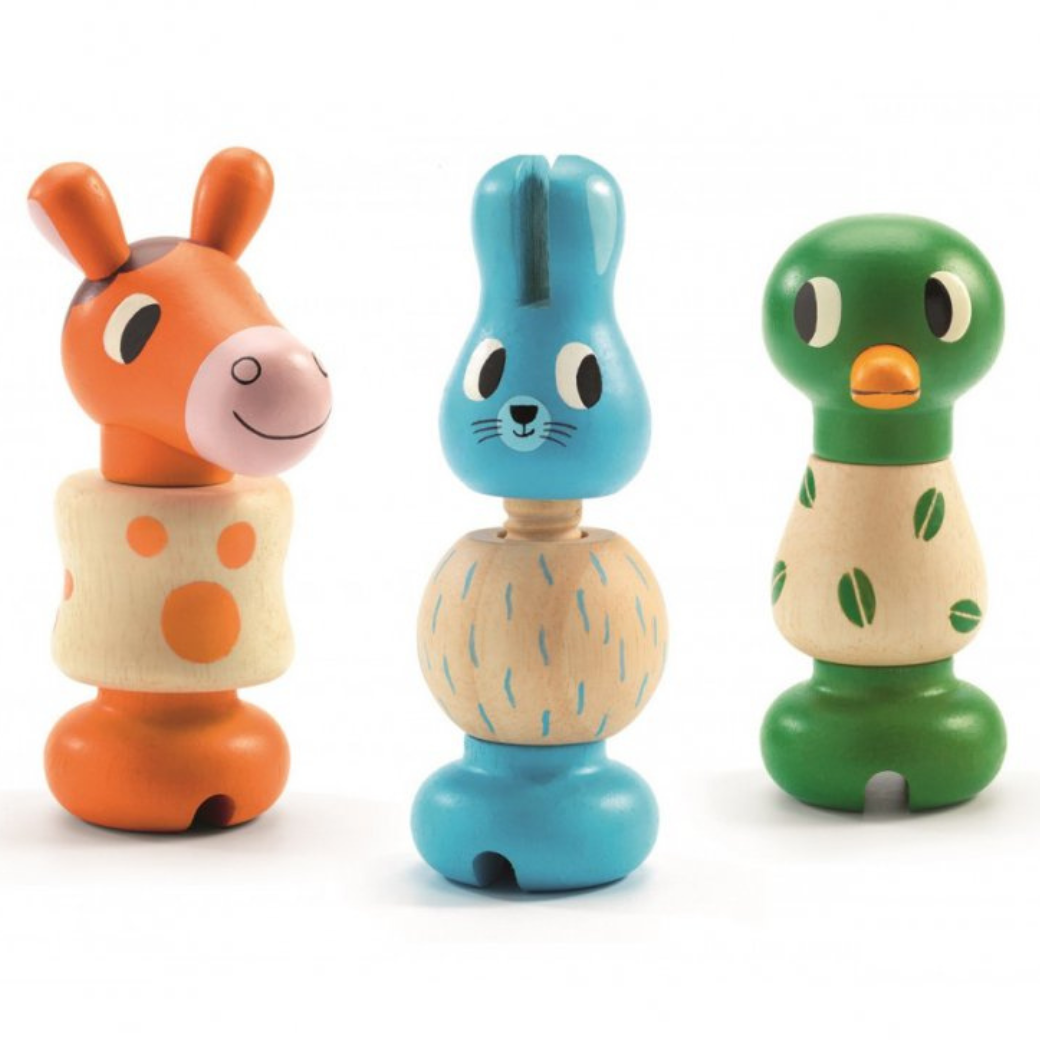 DJECO Dřevěná TRIO šroubovací zvířátka