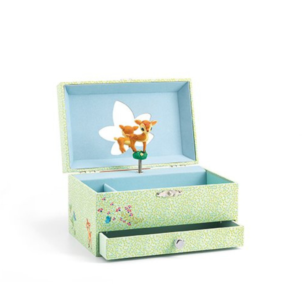 DJECO Hrací skříňka Zpívající koloušek je jedinečným spojením hračky, dekorace a praktického pomocníka. Přináší do reality dítěte prvek pohádky, který z obyčejného ukládání věcí dělá mimořádný zážitek. Je to dárek, který bude vyprávět svůj příběh a stane se nedílnou součástí těch nejcennějších dětských vzpomínek.