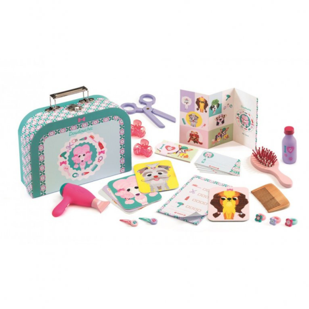 Představte si dokonalý dárek pro malé milovníky zvířat, který je zavede do světa kreativní zábavy a péče o čtyřnohé přátele. Kufřík psí salon od francouzské značky Djeco je kompletní sada pro všechny malé ošetřovatele, kteří si chtějí vyzkoušet práci v opravdovém psím salonu. S tímto krásně designově zpracovaným kufříkem se z každého dítěte stane pečlivý a starostlivý psí kadeřník.
