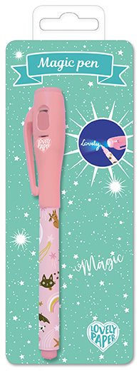 Pero DJECO Lucille není jen obyčejnou psací potřebou, ale propracovanou hračkou, která děti nadchne. Samotné pero obsahuje speciální neviditelný inkoust – stačí jím psát nebo kreslit na papír a text jako mávnutím kouzelného proutku zmizí. Skutečné kouzlo se ale odehraje, když sejmete víčko pera. To totiž ukrývá malé, ale výkonné UV světýlko. Když jím napsaný text nasvítíte, okamžitě se objeví v jasné, zářivé barvě! Je to opravdový zážitek, který nikdy neomrzí.