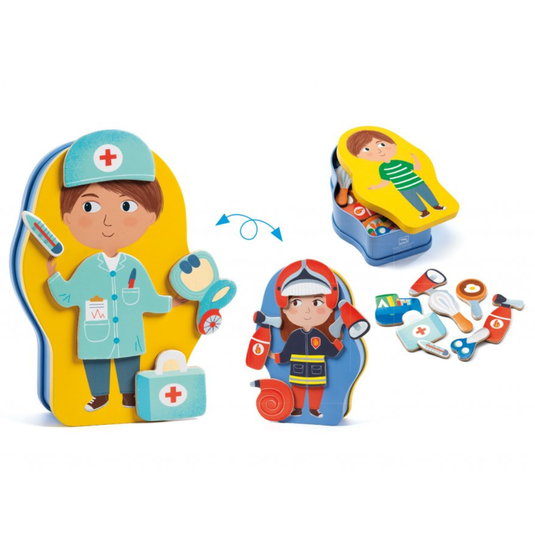 Objevte svět povolání zábavnou a interaktivní formou s magnetickou hrou DJECO! Tato geniálně jednoduchá sada promění každé dítě v režiséra vlastních příběhů. Díky magnetickým dílkům a praktické kovové krabičce, která slouží zároveň jako herní plocha, si malí objevitelé mohou skládat nejrůznější profese a jejich doplňky. Hra je navržena tak, aby podporovala kreativitu, vyprávění a jemnou motoriku, a to vše v přenosném balení, které máte stále po ruce.