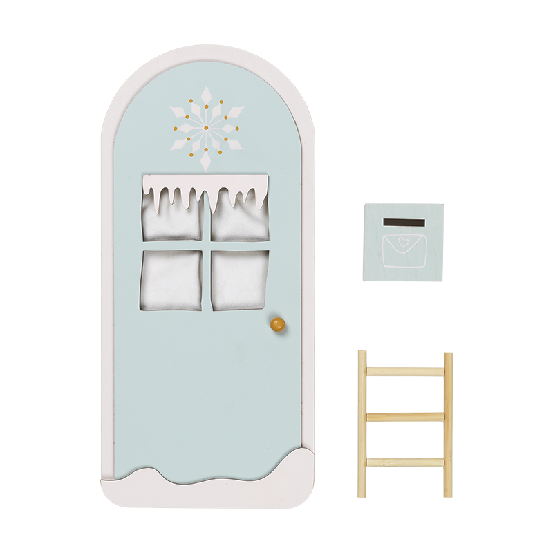 Dveře pro skřítka FABELAB jsou navrženy s důrazem na bezpečnost a estetiku. Jemně zakulacené rohy a hladký povrch z kvalitního, certifikovaného masivního dřeva zajišťují, že se děti během hry nezraní. Jemně mléčná modrá barva Foggy Blue krásně kontrastuje s bílými stěnami a snadno se začlení do jakéhokoli interiérového stylu. Součástí balení je i drobná látková záclonka, která dodává dvířkům autentický a útulný vzhled.