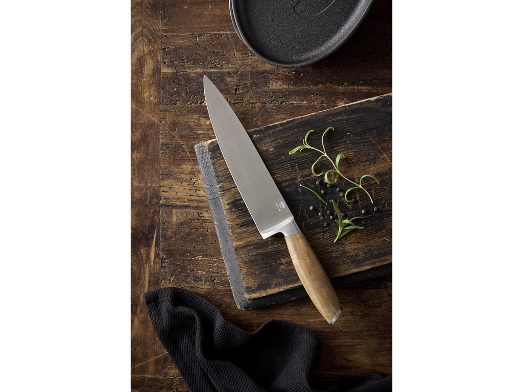 S nožem Holm se i ty nejsložitější kuchyňské úkony stanou snadnými a přesnými. Jeho dlouhá a špičatá čepel perfektně slouží pro techniku krájení „rocking chop“, kdy špička nože zůstává na prkénku a pata čepele jemně kývá. S přehledem si poradí s přípravou velkého svátku, ale bude vám věrným společníkem i při každodenní večeři.