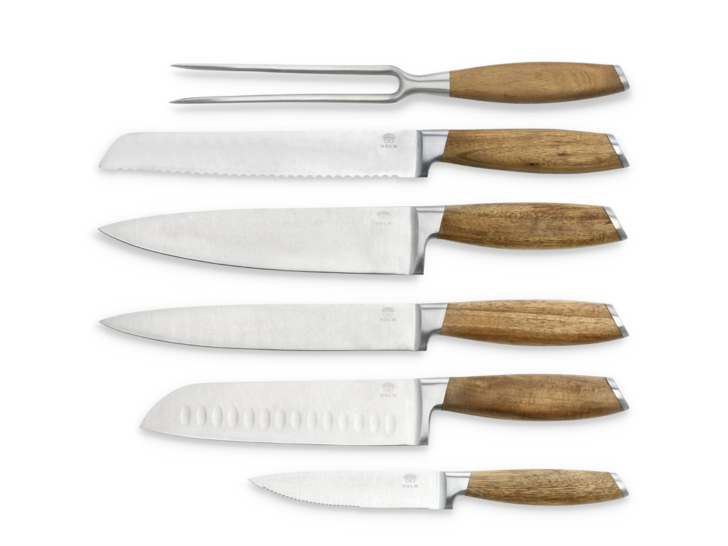 Sada nožů Holm představuje pečlivě vyvážený soubor nástrojů, které transformují přípravu pokrmů z rutiny v radost. Jejich vlastnosti, jako je dokonalá vyváženost, ostří, které dlouho vydrží, a příjemný haptický zážitek z přírodního dřeva, z nich dělají více než jen kuchyňské náčiní. Jsou to partneři, na které se můžete spolehnout při vytváření chutných a zdravých jídel pro vás a vaše blízké.