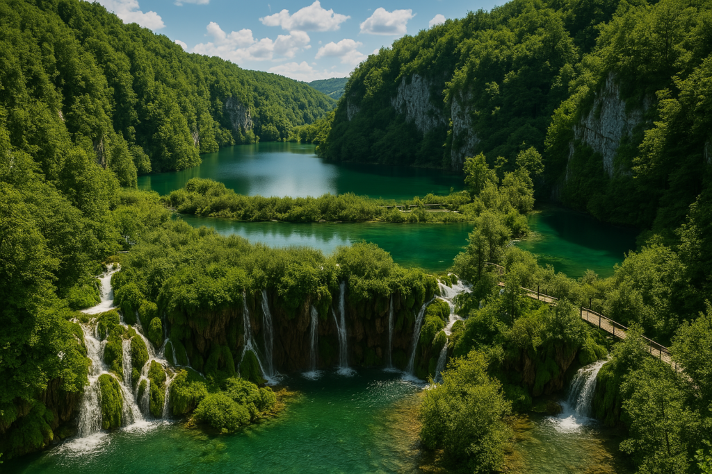 Plitvická jezera jsou místem, kde voda tvoří dechberoucí krajinu – propojené soustavy jezer, kaskád a vodopádů v objetí bukových a jedlových lesů vytvářejí jedinečný pohled, který bere dech. Každý krok po dřevěných chodnících vám odhaluje nový úhel pohledu, novou barvu vody, nový zvuk přírody.